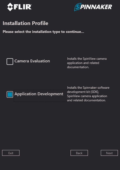 When installing the Spinnaker SDK, select “Application Development”: