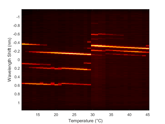 The base spectrometer comes with a Thorlabs CPS532 low-cost, 4.5 mW, 532 nm DPSS laser. By default, this laser has multiple longitudinal modes with a bandwidth that strongly depends on temperature as shown in Figure 11.